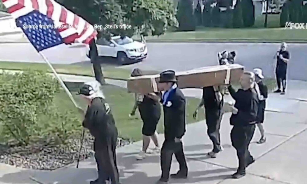 The mock funeral was sponsored by the Southern Wisconsin Grassroots Network and Working Families Party, which live-streamed the “Death of Democracy” event on Facebook. One commenter asked for the lawmaker’s address.