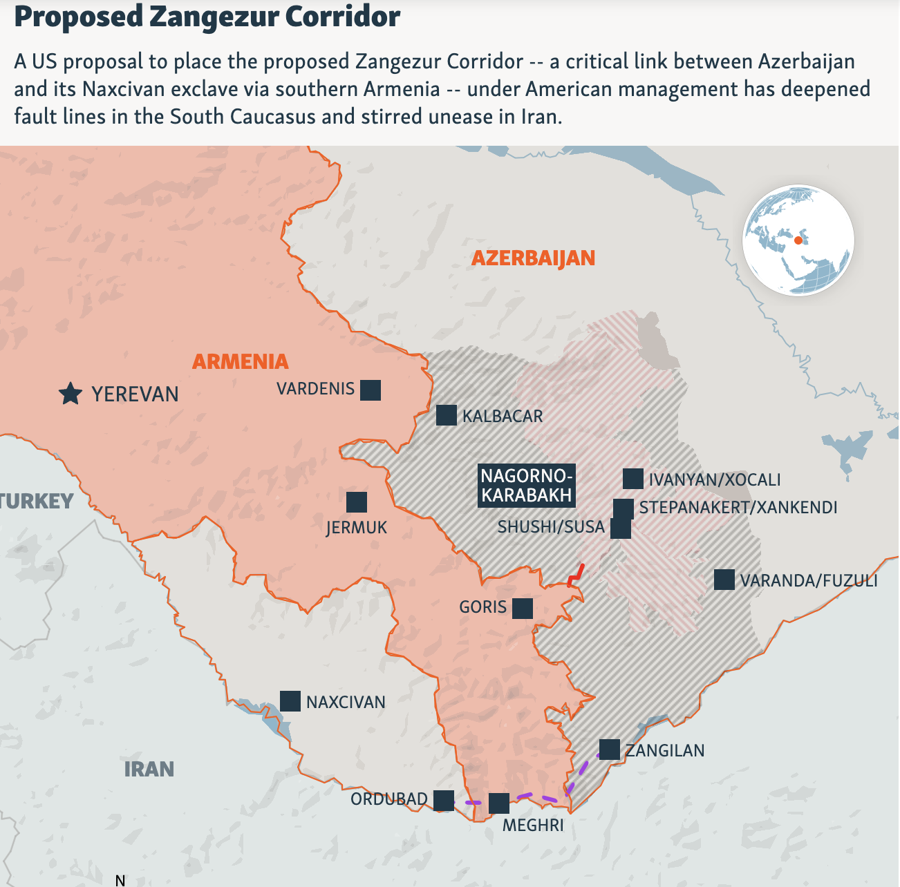 CDM has detailed recently direct from the ground in Yerevan the ongoing Armenian security crisis and the Trump administration’s plans to provide a soft security guarantee by leasing and controlling the Zangezur Corridor linking mainland Azerbaijan and the Azeri exclave to the west of Armenia.