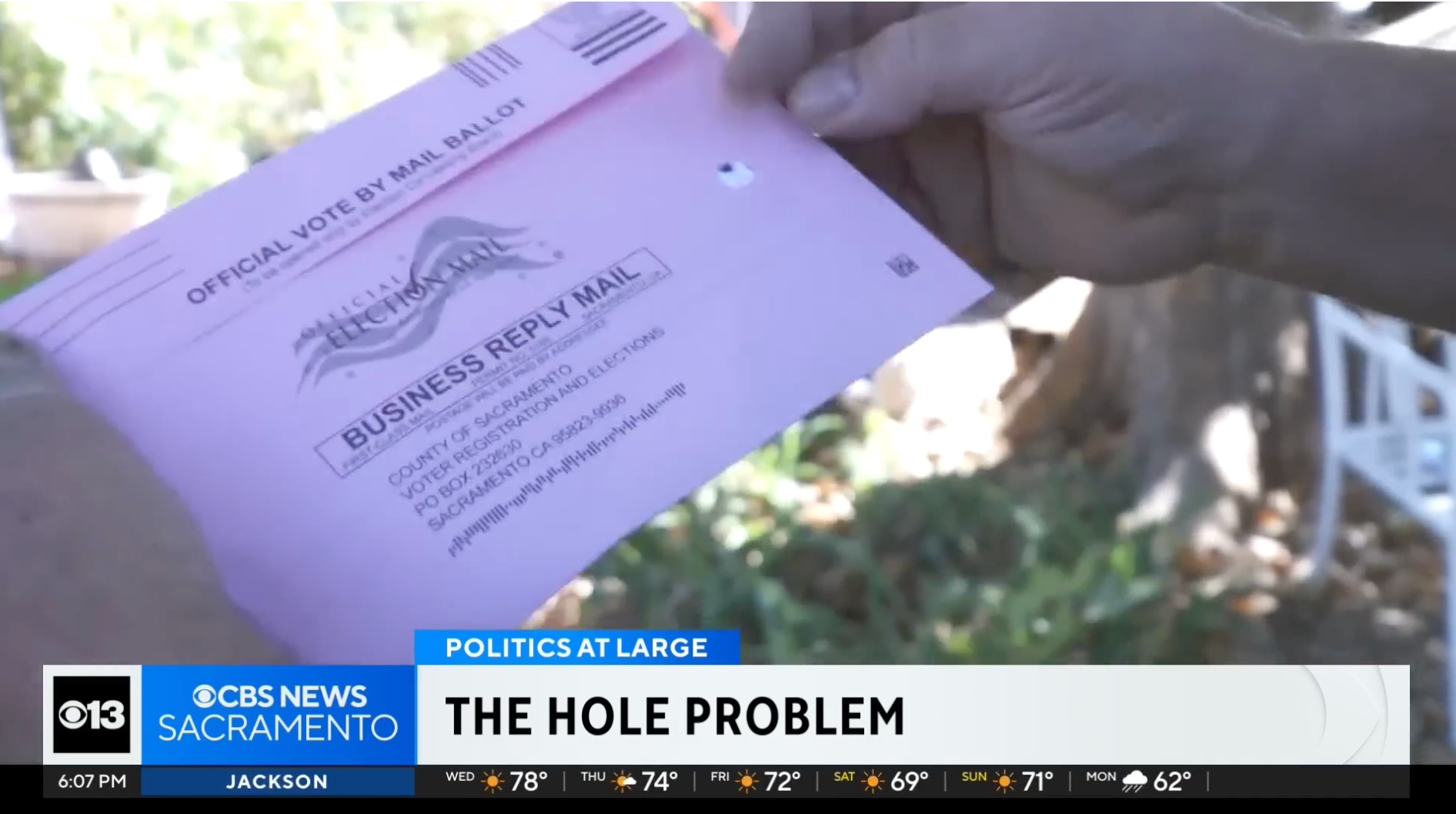 In Sacramento, voters have complained about holes in the envelopes of their Prop 50 mail-in ballots. If positioned just right, the hole can be a window into how the individual voted.