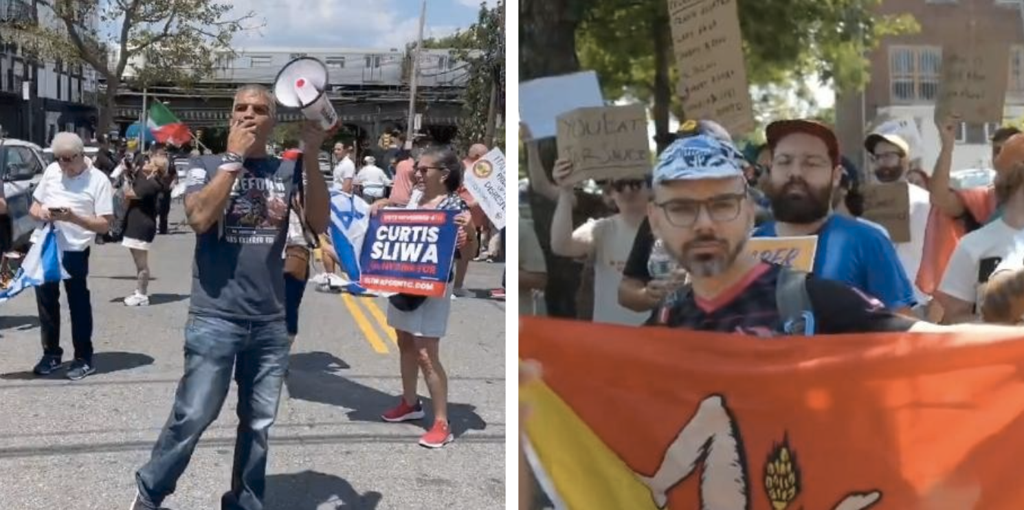 Demonstrators scream insults at each other during dueling protests outside Zohran Mamdani’s Queens office