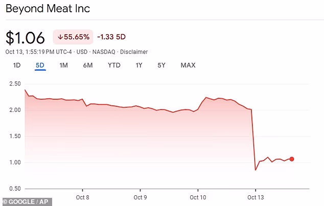 Together, the two drops have erased much of the company’s value. It is now worth just $79million. The fake meat brand, once promoted by Kim Kardashian and model Nicole Williams-English, is also burdened with about $800 million in debt and struggling to stay afloat.
