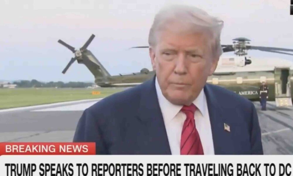 President Trump, returning to the White House on Sunday, was offered the opportunity to weigh in with his own thoughts about Sweeney’s political leanings.