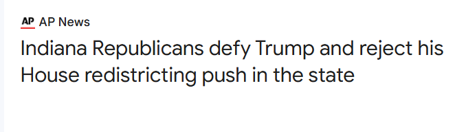 “Indiana lawmakers defy Trump’s redistricting push,” headlined The New York Times.