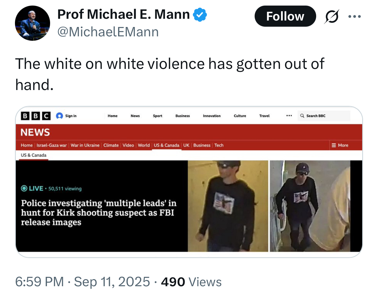 Sick: Hockey Stick Climate Fraud Scientist Shares Tweet Calling Charlie Kirk ‘Head of Trump’s Hitler Youth’