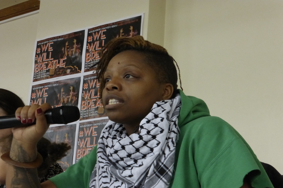 Cullors speaks during a Ferguson Solidarity Tour event in London in 2015