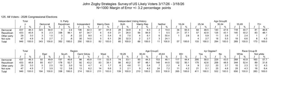 The poll of 1,000 likely voters, conducted March 17-18 with a margin of error of plus or minus 3.2 points, puts Democrats at 46.3% and Republicans at 45.8%. That’s a statistical dead heat, and it’s the GOP’s clearest sign yet that the national mood is shifting back toward Republicans.