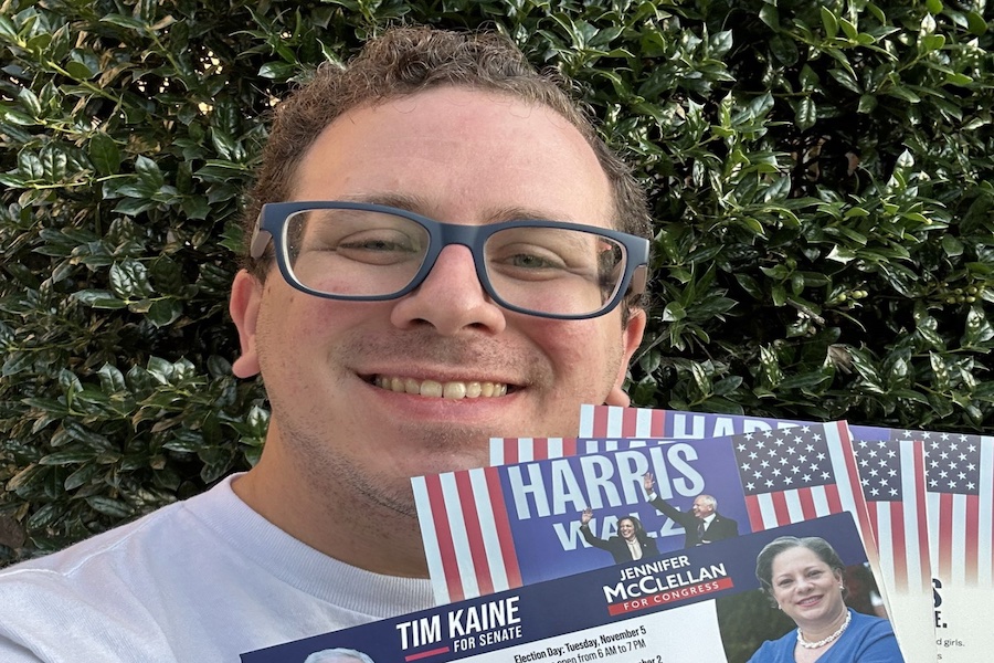 Sprinkle hands out campaign literature for Kamala Harris, Senator Tim Kaine and U.S. Rep. Jennifer McClellan (D-VA)