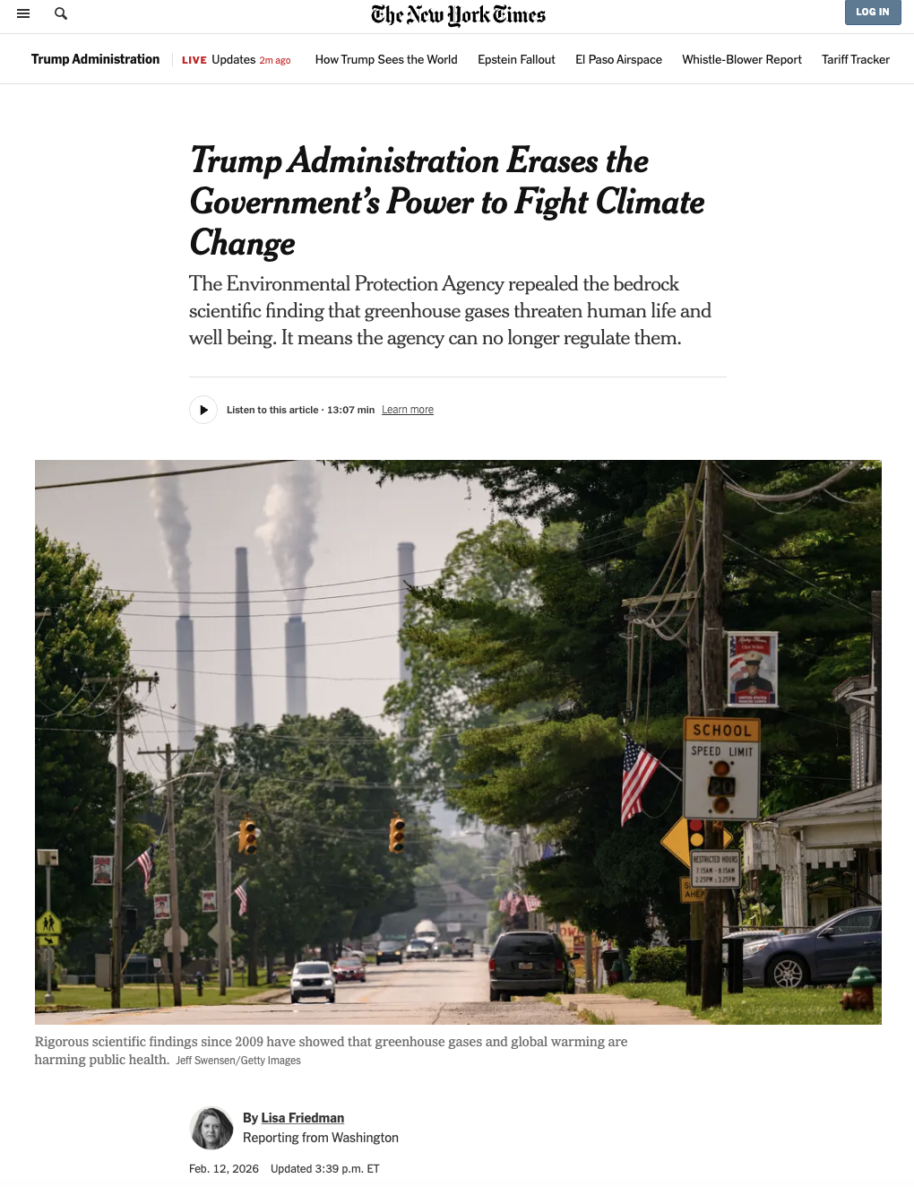 New York Instances: ‘Trump Admin Erases the Government’s Energy to Battle Local weather Change’ – ‘It is a knockout punch’