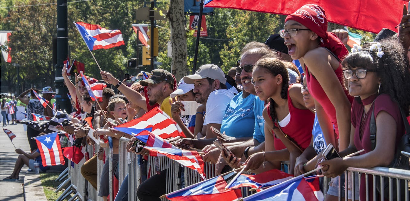 Picture this: Puerto Rican flags, referred to as “la monoestrellada” – the “one-starred” – everywhere you look. The smell of alcapurrias – if you can find them! – and other savory fritters wafting through the air. The rhythms of salsa or Bad Bunny’s trap reggaetón blasting out of speakers. Almost everybody speaking some version of “españinglés,” or Spanglish.