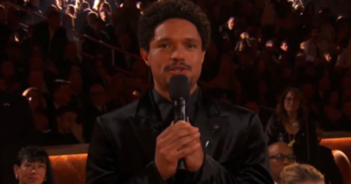 In his sixth time hosting the show — and what he says will be his last — Noah mostly played it safe during his monologue, not delving too much into much politics or controversy, at least during his monologue. There was no mention of U.S. Immigration and Customs Enforcement (on a night when many attendees were wearing “ICE OUT” buttons).