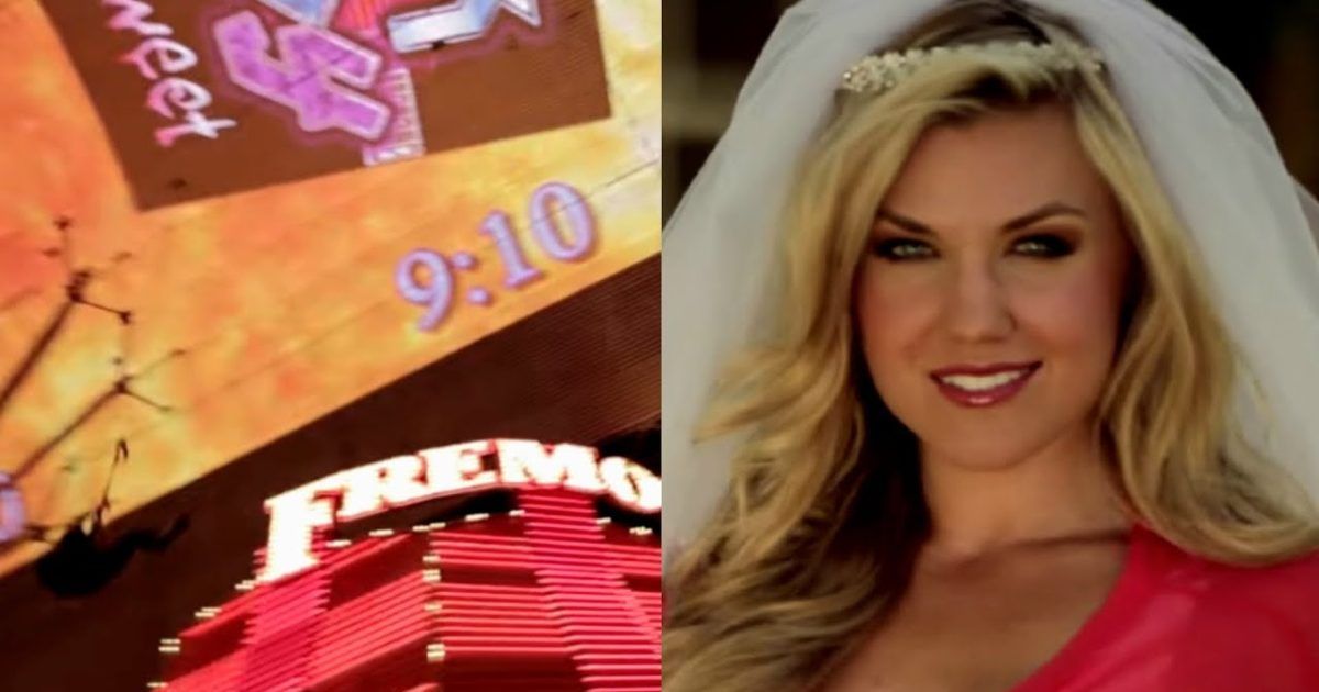 But there’s a moment in the video where she is zip-lining down Fremont Street in Las Vegas and the camera very clearly highlights her zip-lining right past a date-stamp or time-stamp of 9:10.