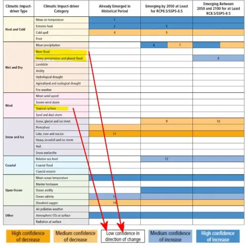 The United Nations Intergovernmental Panel on Climate Change (IPCC) admits that it has “low confidence” in even the sign of any trend towards more or less flooding.