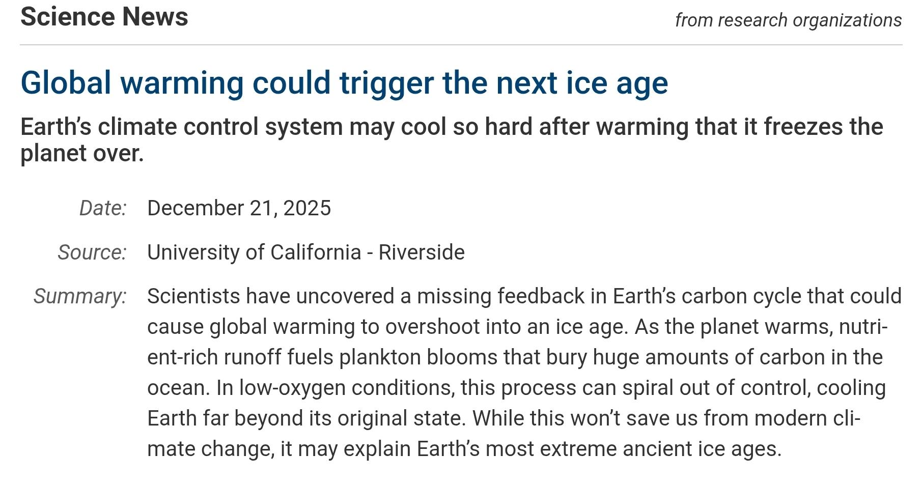 STUDY: ‘Global warming could trigger the next ice age’ – ‘Earth’s local weather management system might cool so onerous after warming that it freezes the planet over’
