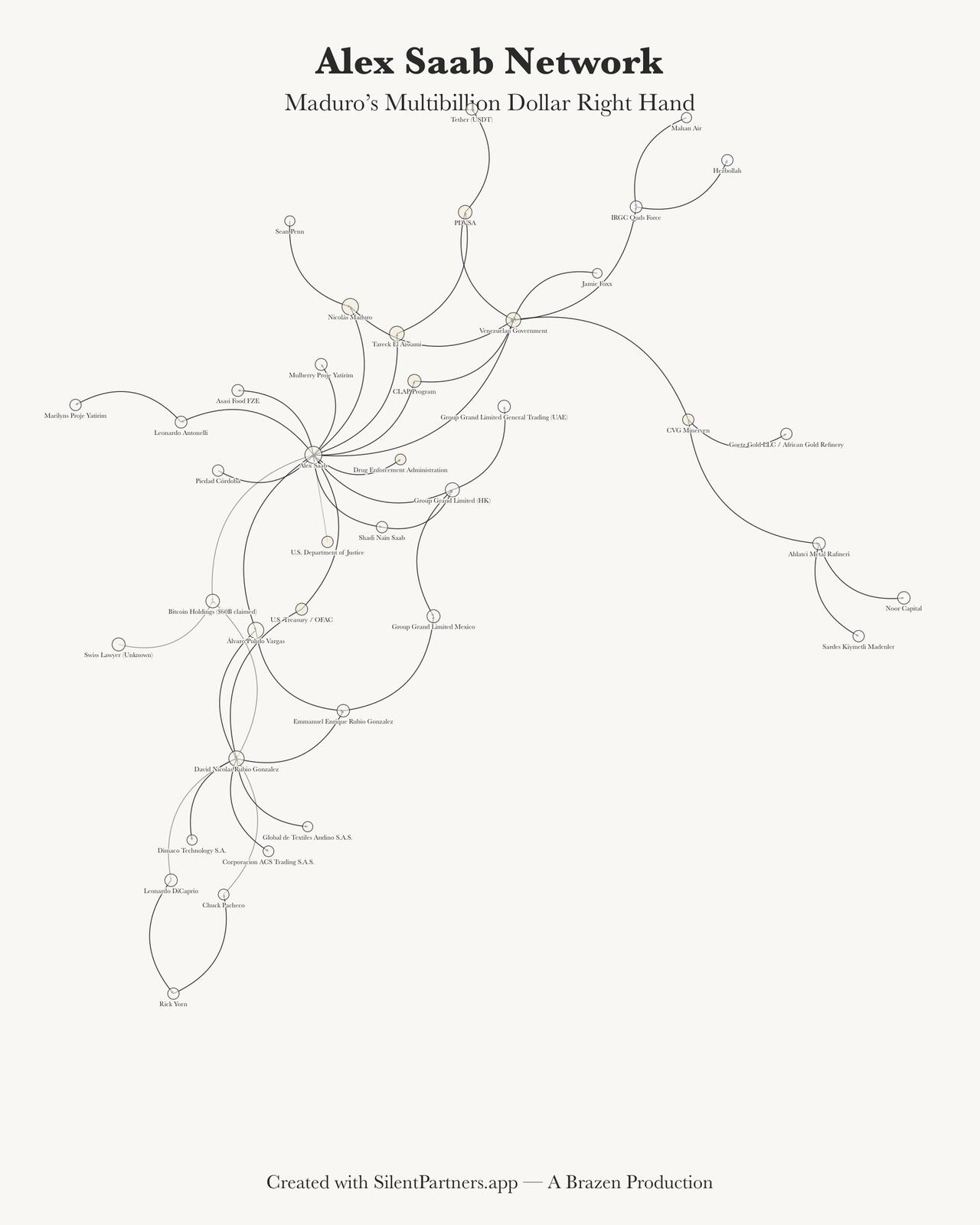 Alex Saab’s network spans shell companies, government officials, and international intermediaries across multiple continents.