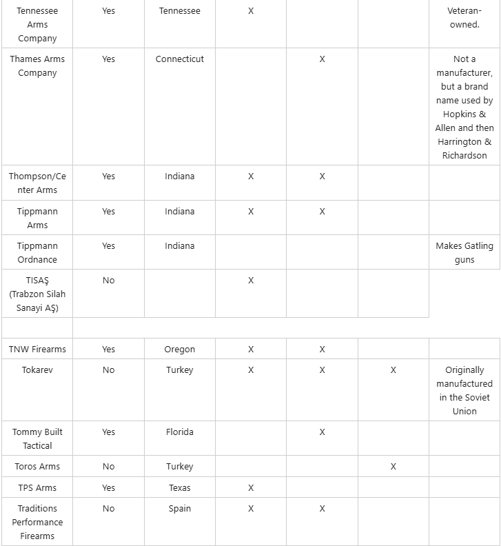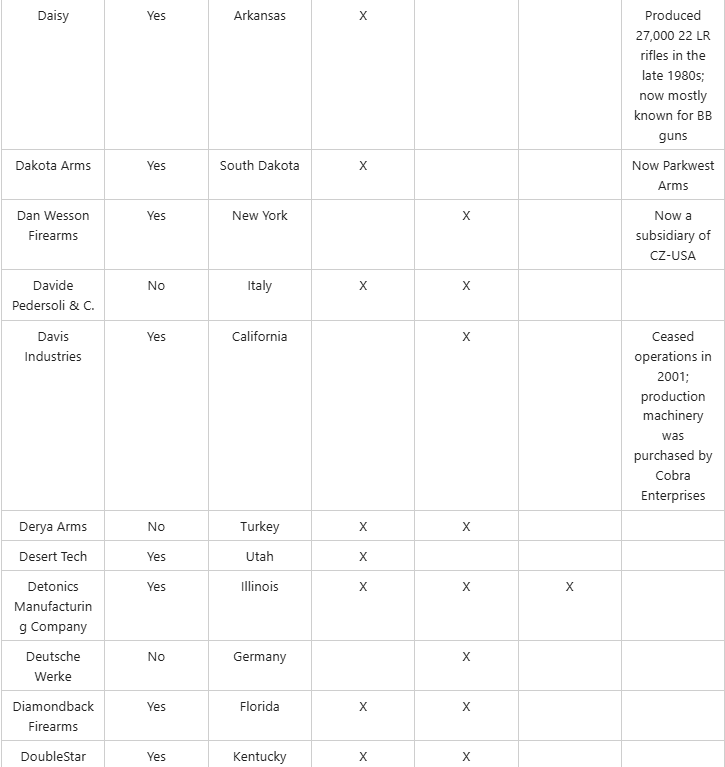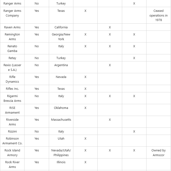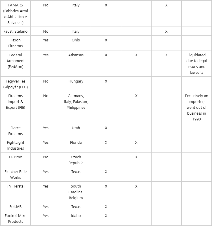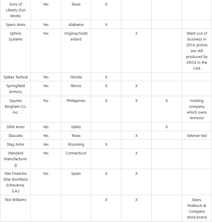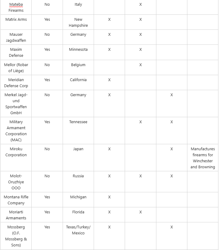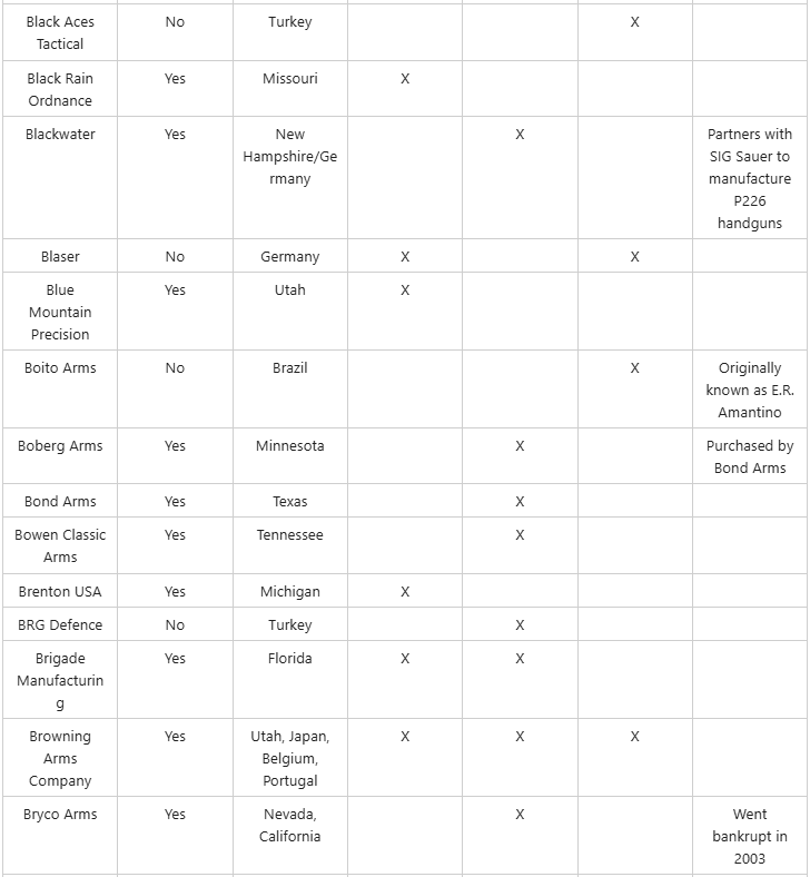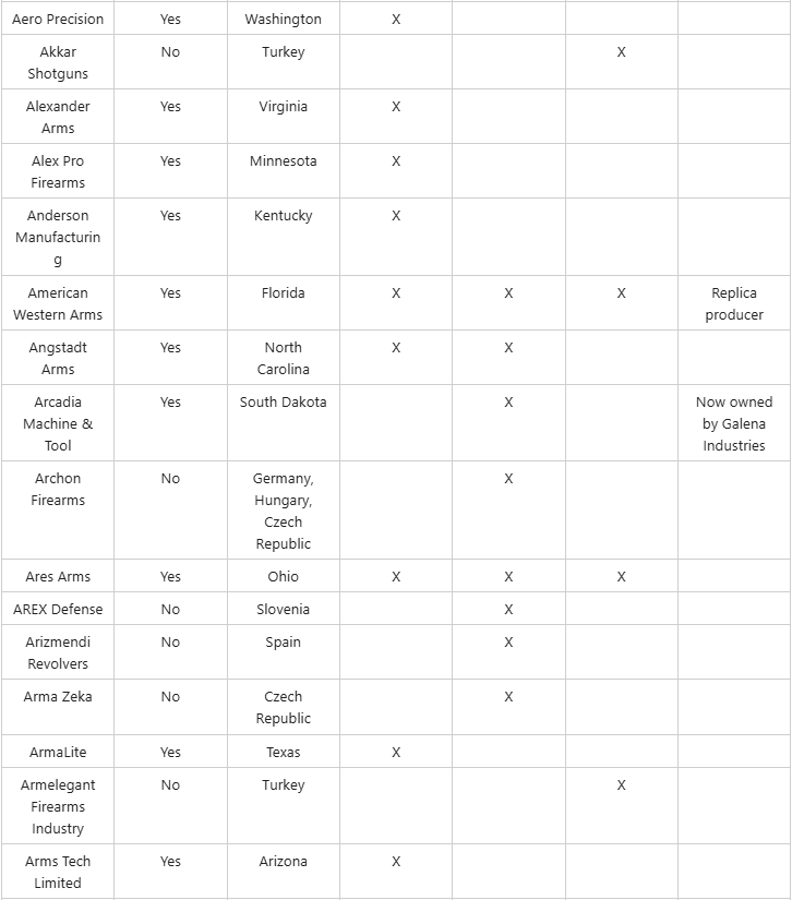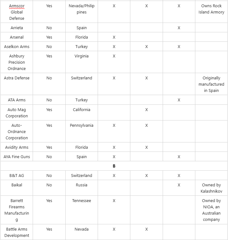 If you’re having trouble keeping track of which manufacturers make which firearms – and where – then our handy up-to-date list is here to make your life easier.