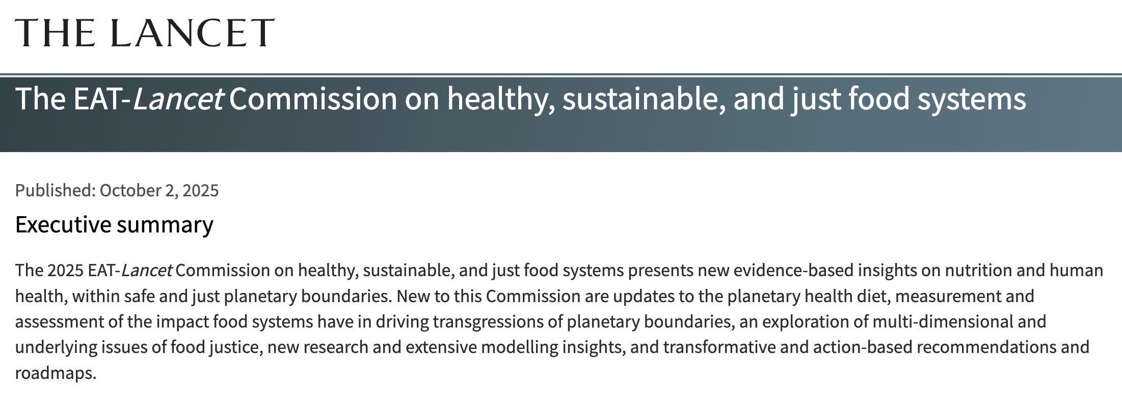 The peer-reviewed paper is “The EAT–Lancet Commission on healthy, sustainable, and just food systems” by some large number of authors. Note the “just”, which does not belong in a journal purporting to be about science.