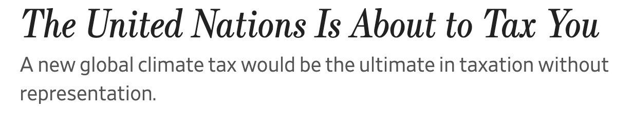 Voters are showing their opposition to the net-zero climate agenda whenever they get the chance. But that isn’t stopping the United Nations, which this week is poised to impose what amounts to a global tax on carbon emissions. Yes, this is the definition of taxation without representation.