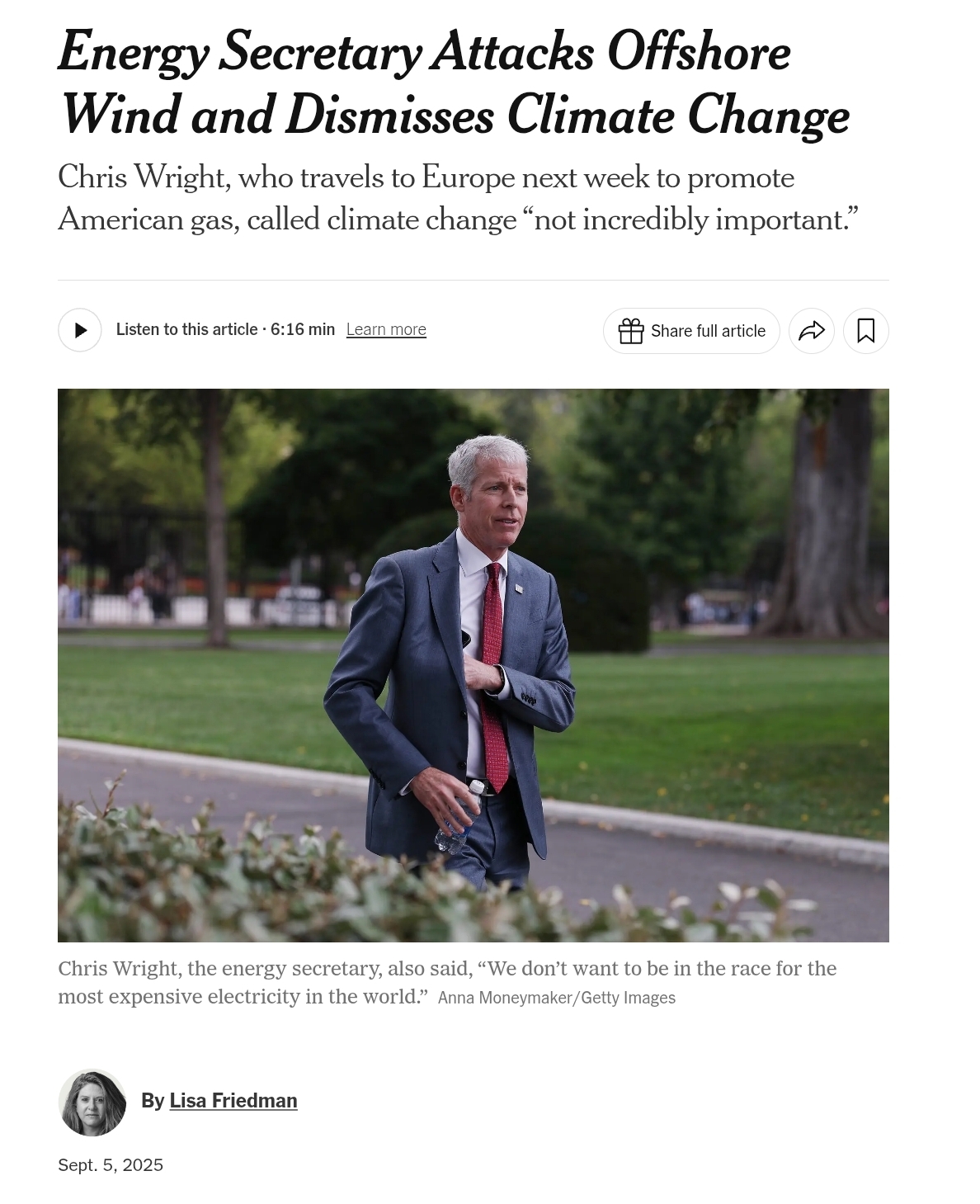 This is what we voted for! NYT: Energy Sec. Wright Attacks Offshore Wind & Dismisses Climate Change as ‘not incredibly important’ – Calls UN Paris Pact ‘silly’