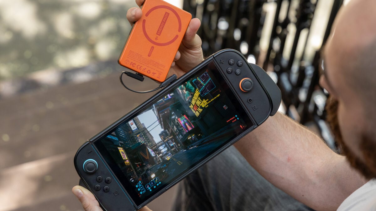 With a magnetic attachment point for a MagSafe charger, it’s the lightest, easiest way to get a few hours more playtime on Switch 2.