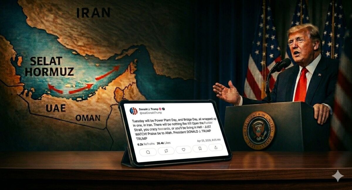 Tuesday will be Power Plant Day, and Bridge Day, all wrapped up in one, in Iran. There will be nothing like it!!! Open the F**kin’ Strait, you crazy b*stards, or you’ll be living in Hell – JUST WATCH! Praise be to Allah. President DONALD J. TRUMP