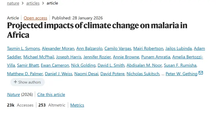 “Our findings indicate that climate change could lead to 123 million additional malaria cases and 532,000 additional deaths in Africa between 2024 and 2050…”