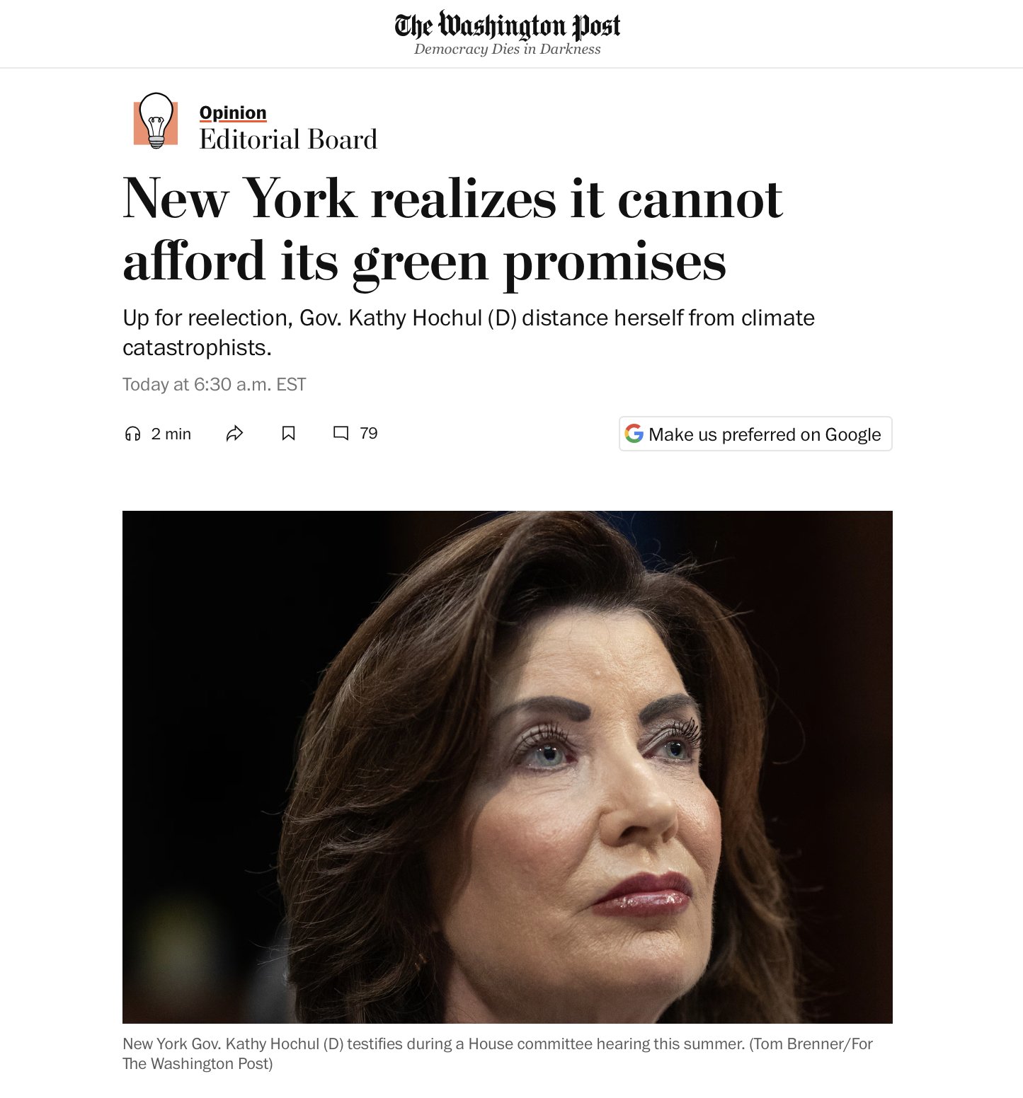Wash Submit Editorial Board Turns In opposition to Local weather Agenda?! ‘Symbolic climate gestures please activists, but they become a political liability when the bills come due’ – ‘New York realizes it cannot afford its green promises’ – Whereas ‘Florida has chosen to base its energy generation on reliability & affordability, instead of ideology’