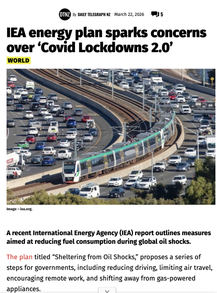 IEA energy plan sparks concerns over ‘Covid Lockdowns 2.0’ – Plans for ‘reducing fuel consumption during global oil shocks’