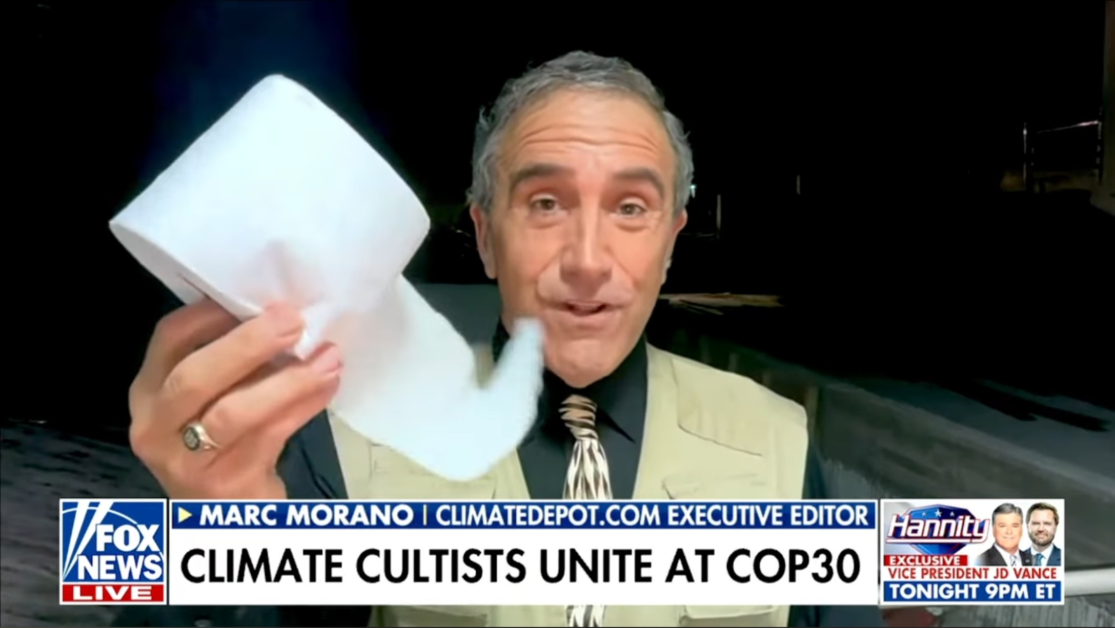 Watch: Morano on Ingraham on Fox Information holding up bathroom paper at CRAP30 in Brazil – ‘This climate summit is a disaster’ – Clear-cutting Amazon timber for freeway & UN seeks world censorship