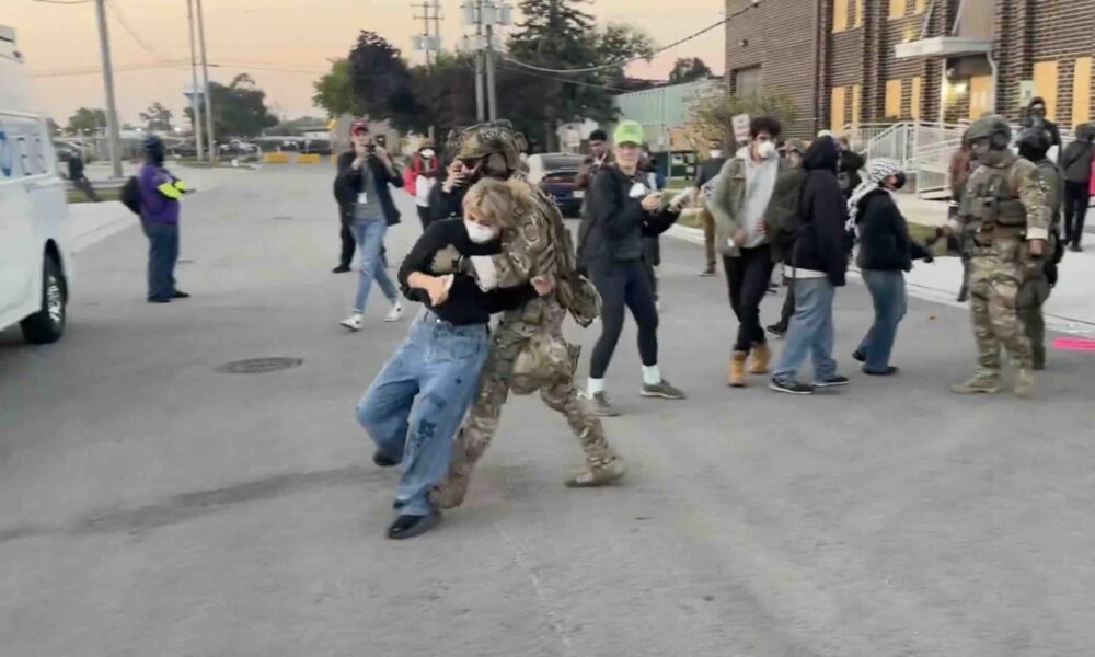 Video of the brief tussle shows Abughazaleh in blue jeans and a black long-sleeved shirt as she positions herself in front of an ICE vehicle about to depart the center. Protestors and reporters filled the surrounding scene to the point that another ICE agent deployed tear gas to try and disperse the crowd.