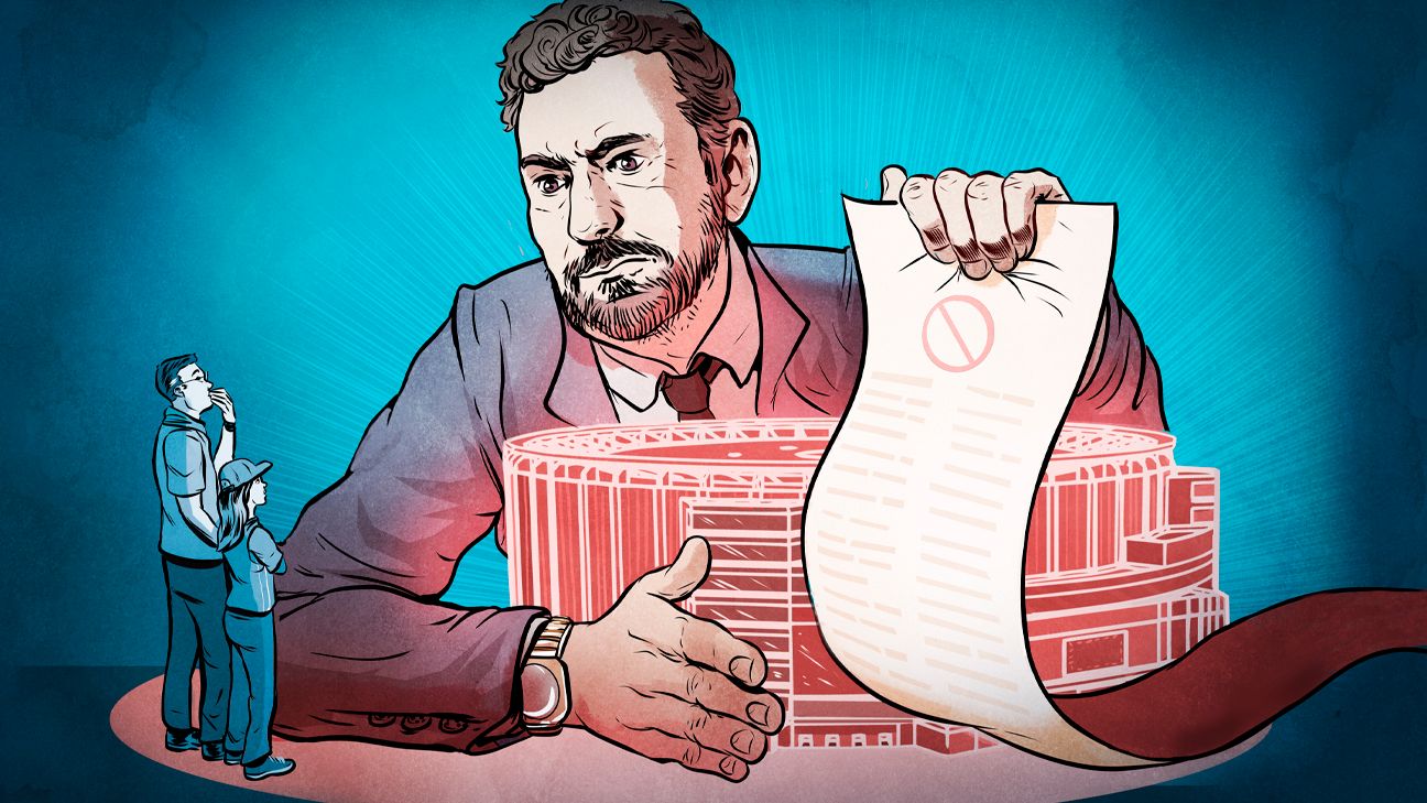 FROM JAMES DOLAN’S vantage point, the policy is pure common sense. You wouldn’t sue your neighbor and then show up at his house for his annual pool party, would you? The Garden is private property, even if Dolan is glad to blur the lines to keep receiving an estimated $42 million annual property tax break from the City of New York and enjoying all of the free law enforcement assets that come with being located directly above Penn Station, one of the world’s busiest transportation hubs. It’s private property, except when it’s not.